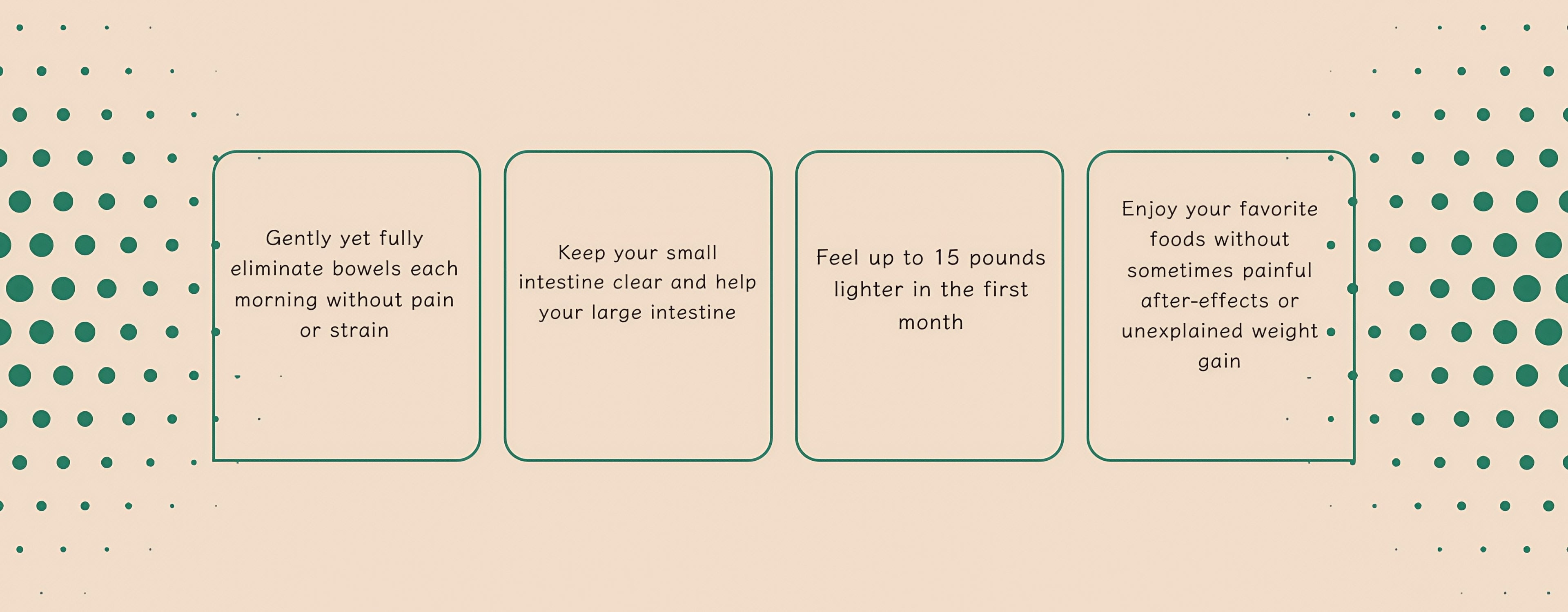 You're going to increase the health-protecting friendly flora, start feeling more energy throughout the day, achieve full elimination in the bathroom every morning, curb those annoying cravings, get lean and trim, and finally feel good about yourself.